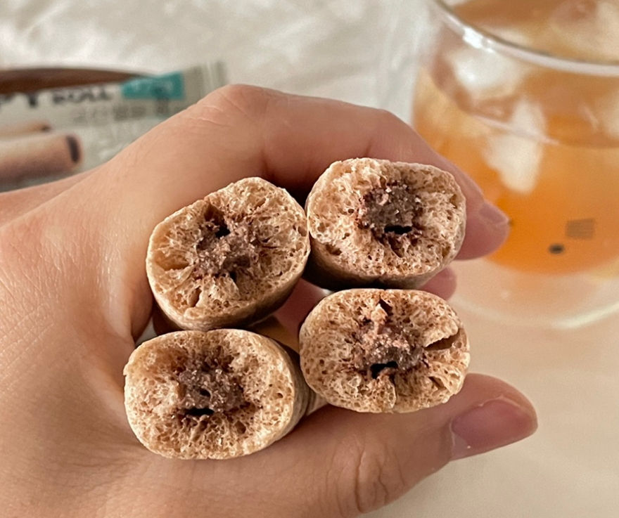 ขนมเต้าหู้แผ่นอบกรอบมีเต้าหู้ถึง 28.4% และมีโปรตีน 6 กรัม จึงเป็นขนมโปรตีนที่หลายคนชื่นชอบ